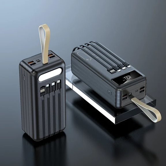 Powerbank 30000mah, 50000mah មានខ្សែសាក 4ប្រភេទ